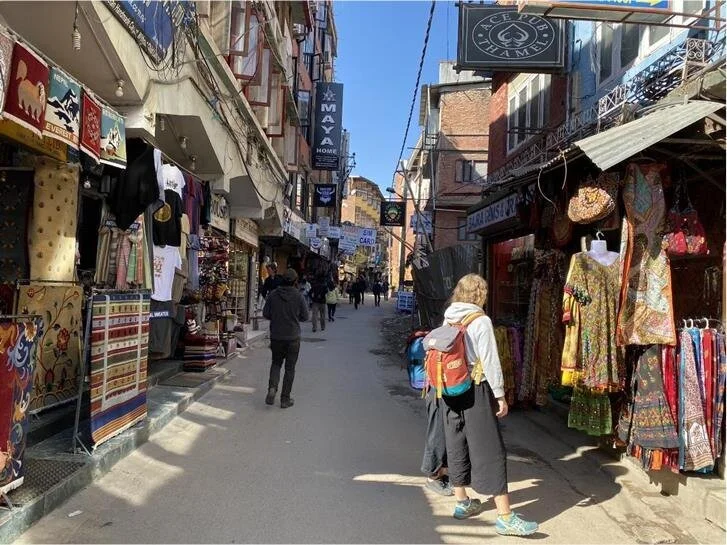 After the visit to Reliance, Rick and I met Leena Saytal, the Executive Director of our partner in Nepal BSF (Bhuvaneshwori Satyal Foundation), for lunch at Himalayan Java in the tourist district of Thamel. I had stayed near Thamel on my trip to Nepal in 2011. We visited several of the merchants who provide the goods that Mitrata sells at our holiday bazaars and trivia nights. These visits are important for sourcing unique, fair trade goods to sell at our events!