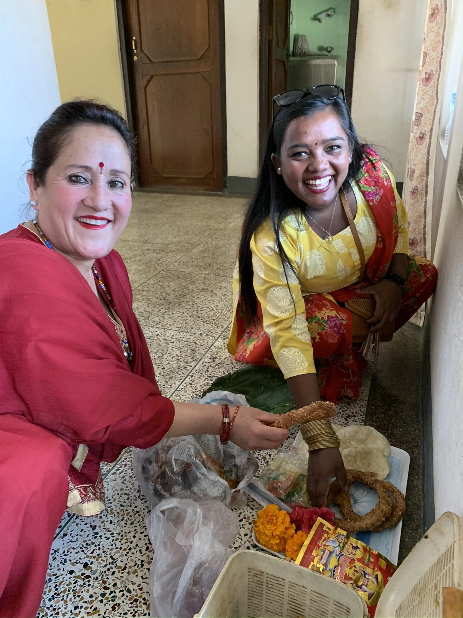 One of my favorite days in Tihar is Bhai Tika, when sisters honor their brothers with ceremonies including tika and gifts and when families gather to enjoy delicious food. Last year, Yogesh and I became brother and sister in a lovely ceremony during Tihar.