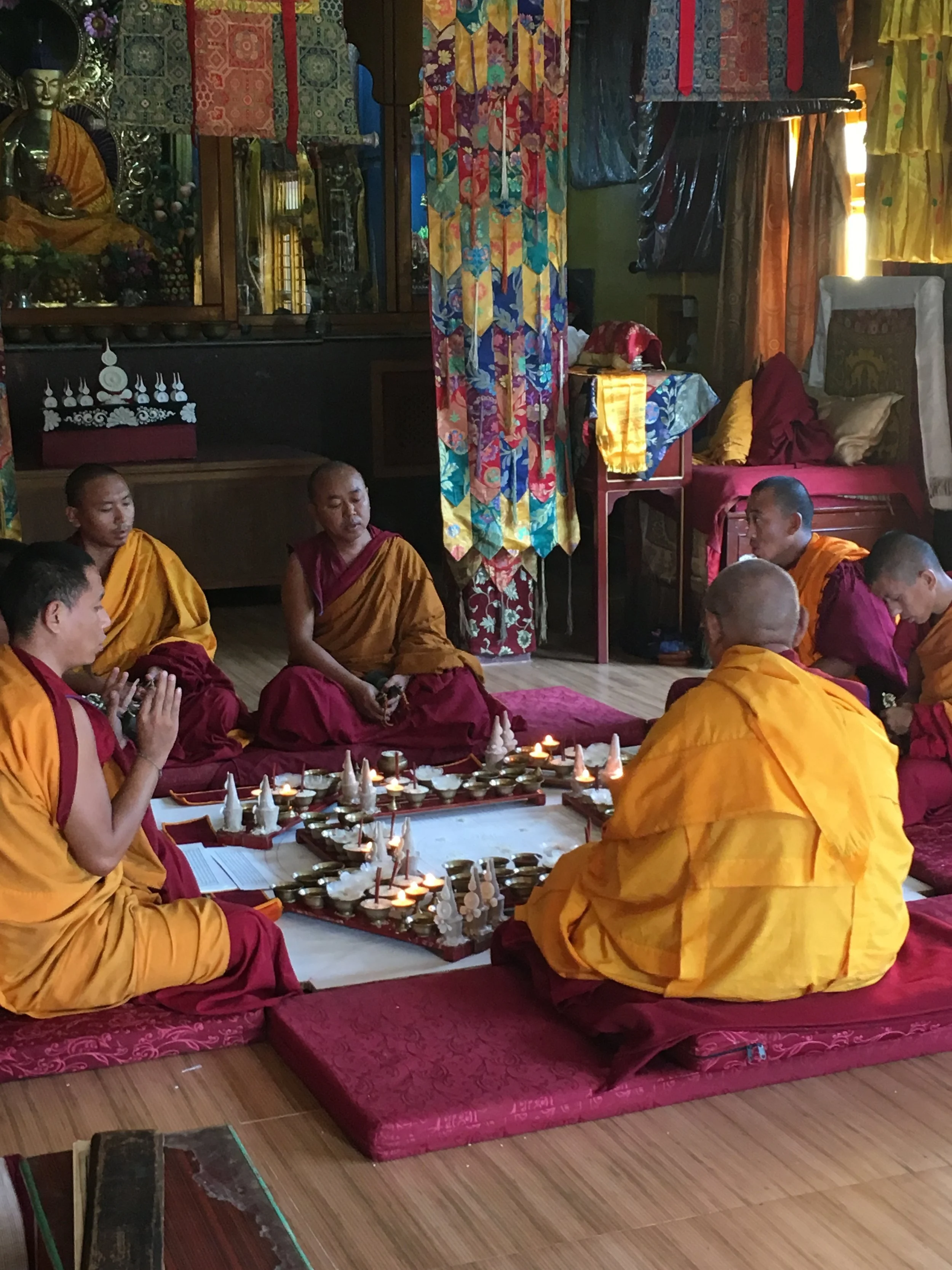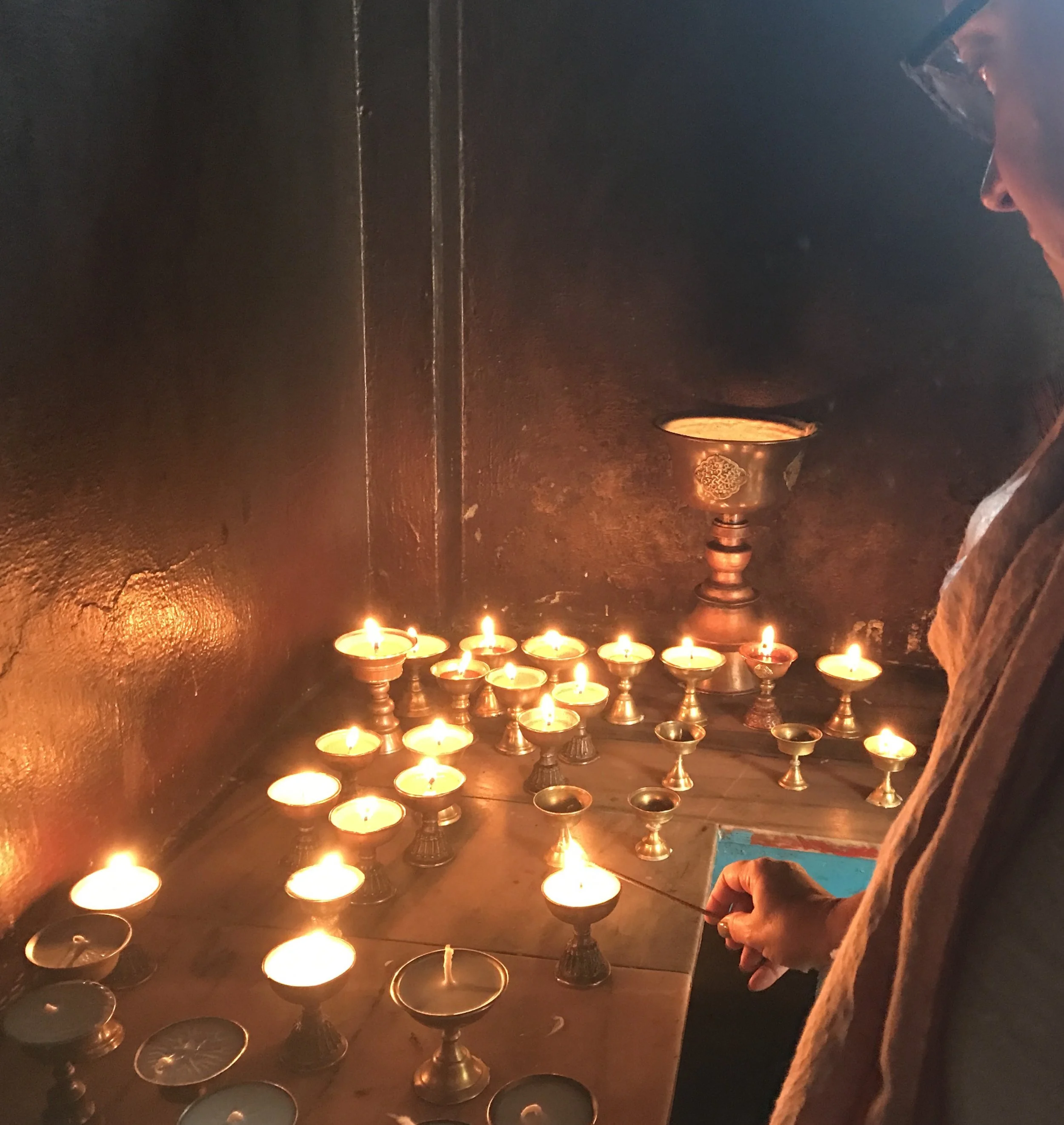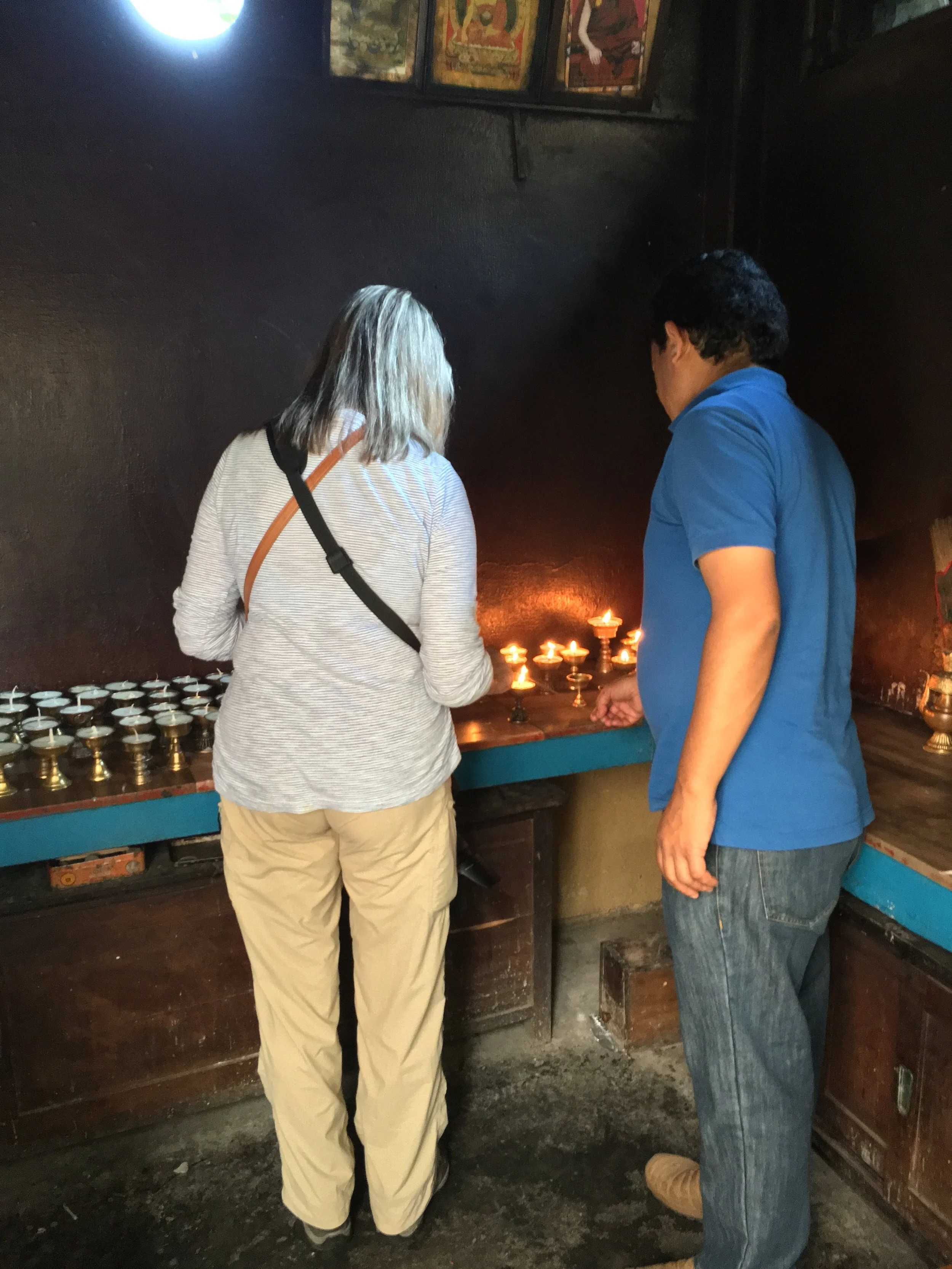 Friday was the last full day spent in the resort town of Pokhara. After breakfast we visited the local Buddhist monastery. We observed the monks in prayer at the beginning of creating a Mandala. It was enchanting to watch them work with bells, candles, and hand gestures while chanting in deep voice. It was a special place that touched all of us. We lit butter candles in honor of our lost loved ones.