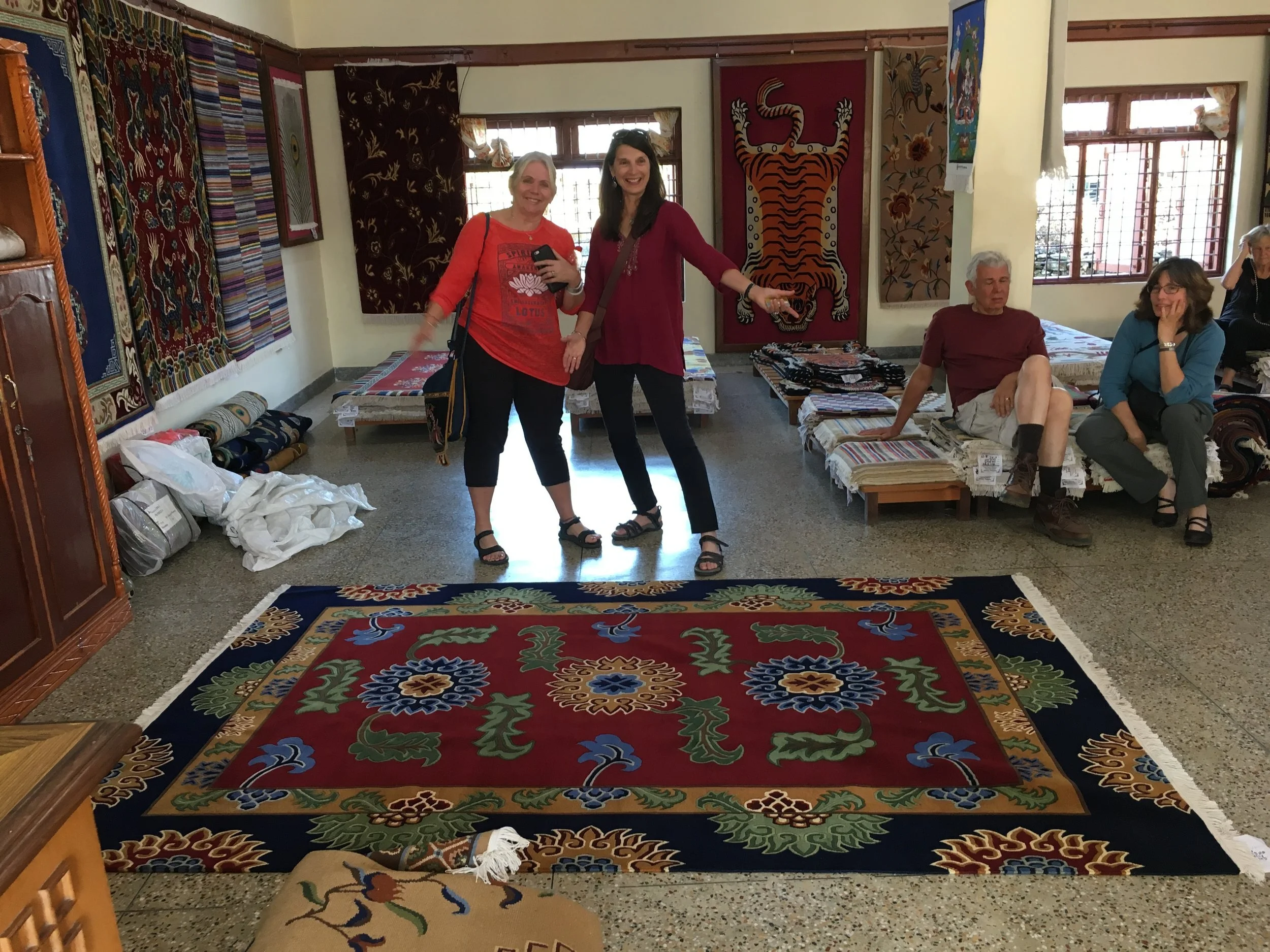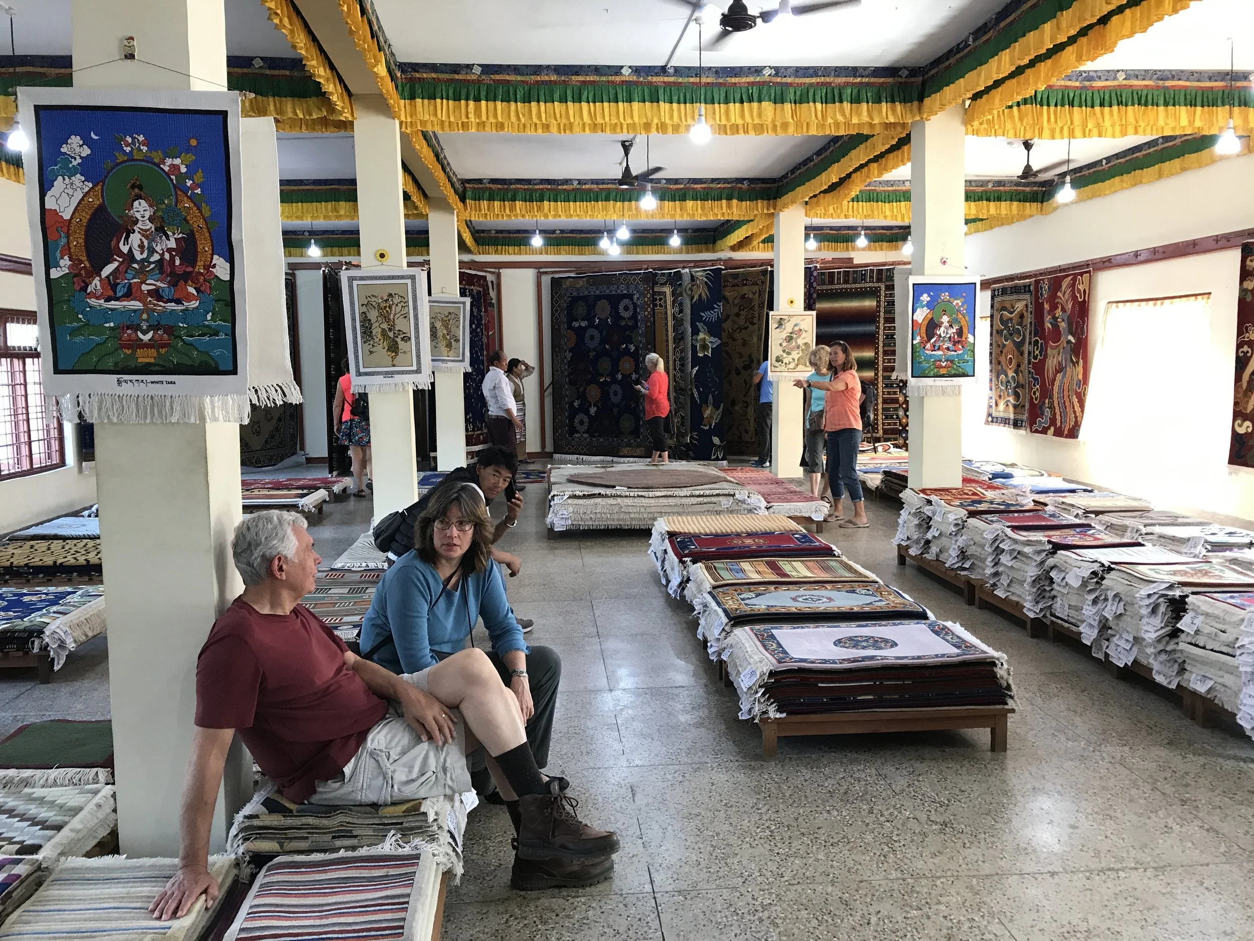 We then ventured to the nearby Tibetan camp where beautiful handcrafted Tibetan rugs are made. These rugs are unbelievable works created by true artisans and fair trade items too. Each of us found beautiful rugs to be shipped home and we lightened our wallets considerably. The Tibetans were happy to see us and definitely would like us to return. After all the hard work shopping, we visited the International Mountain Museum. The museum had an interesting film and many exhibits about the Himalayan mountains and the people who live there. We then enjoyed a traditional Nepali set meal for lunch. Some of us spent the afternoon shopping and chatting in a local coffee house.