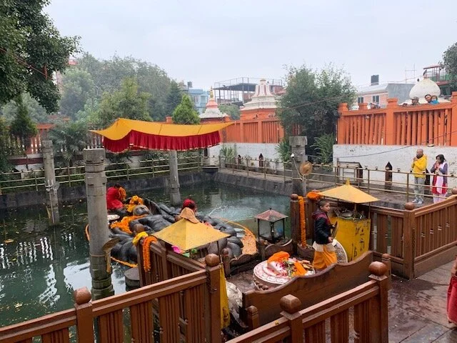 In Budhanikantha, there is a beautiful temple dedicated to the Hindu deity Lord Vishnu. It is one of my favorite places in Nepal and one that I visited on my very first trip in 2000. I have never forgotten its beauty and spiritual energy. The temple houses the floating statue of sleeping Vishnu, which is carved from a single block of basalt and is quite sacred and mysterious.