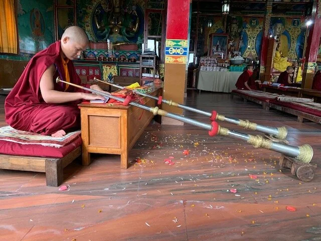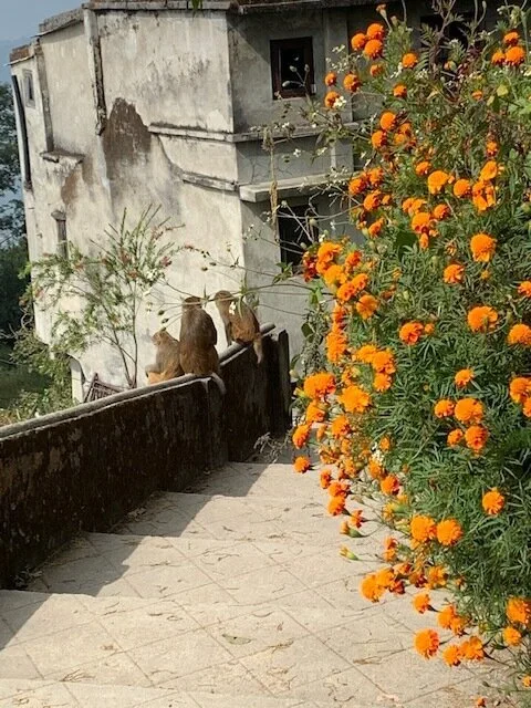 We took time to sit and meditate in the colorful monastery and listen to the chanting and musical instruments of the Tibetan nuns. The nuns were welcoming and open to visitors and so were the jumping and playing monkeys that overtook the entrance to the monastery!