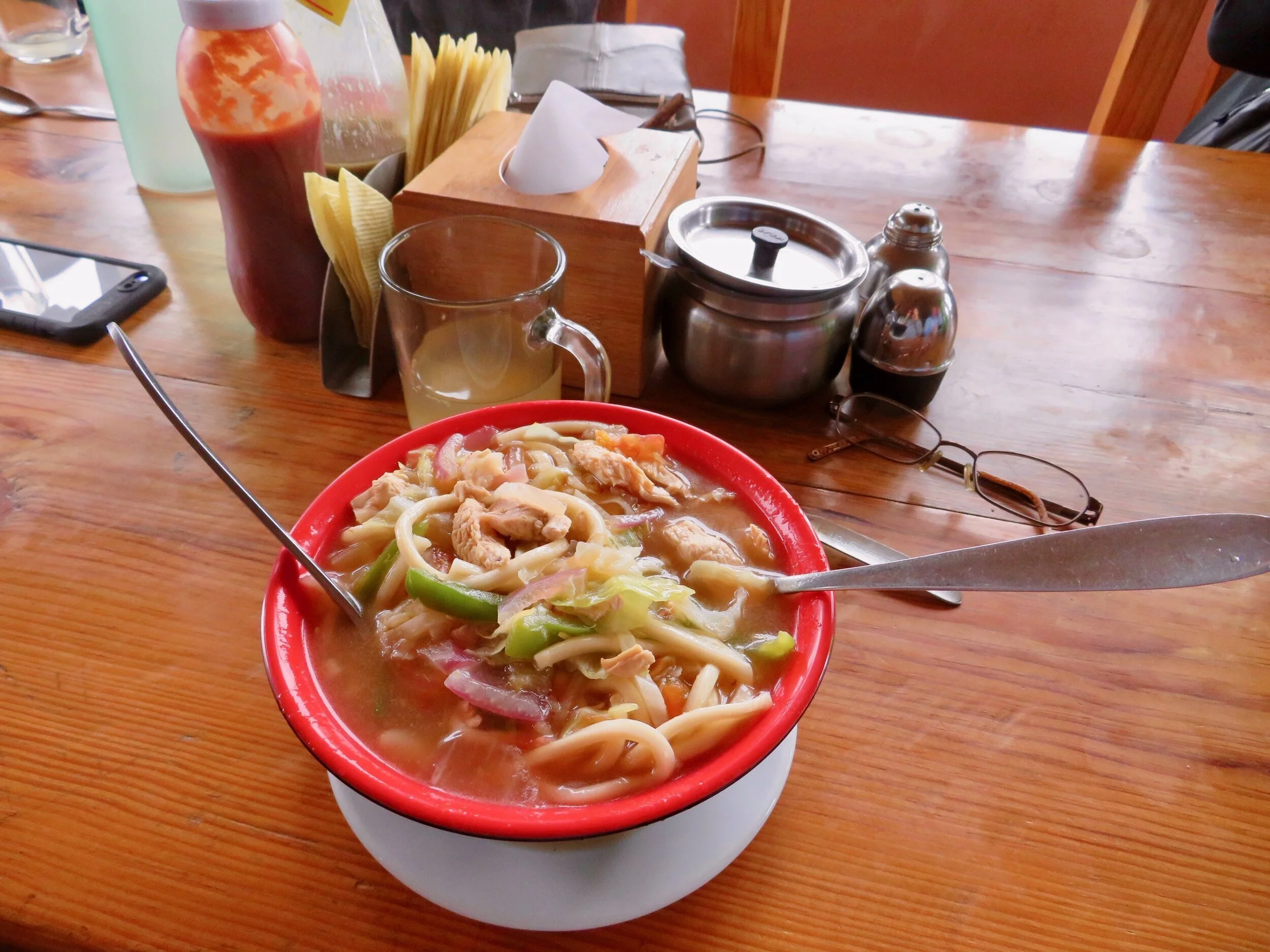 Travelers enjoying their hot meal