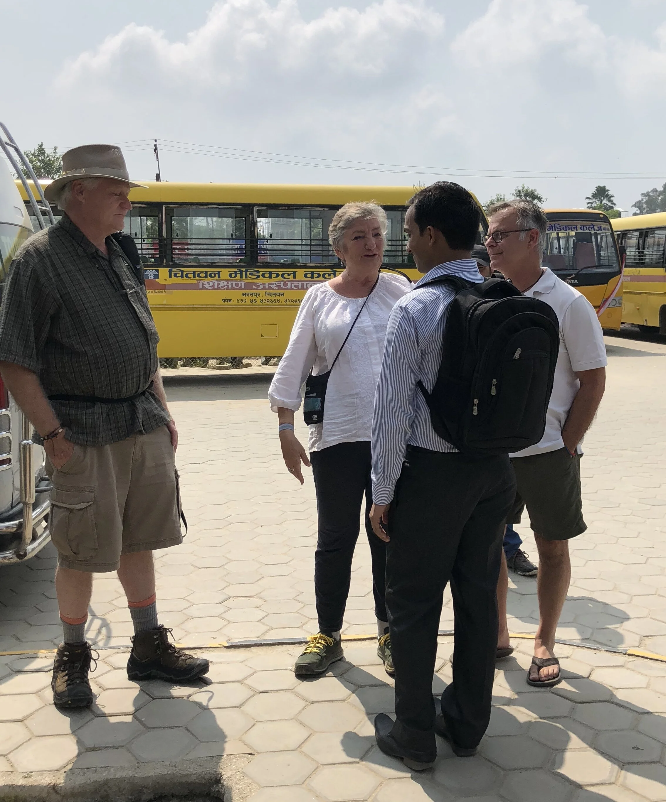 Our trip to Chitwan with a small group of fellow Mitrata travelers (while others were in Pokhara) was the heart and soul of our (Bonnie and Gordon’s) journey to Nepal. For more than 13 years we have supported Sudan Adhikari who is beginning his fourth year at Chitwan Medical College, studying to be a doctor. This was our first meeting. We arrived at the teaching hospital and as our group waited someone said, “there’s Sudan”. We saw a serious young man, a medical student, approaching and recognized the boy we first met as a photograph 13 years ago. The meeting was a bit awkward but filled with emotion. We felt pride in his accomplishments but it was somewhat like we were meeting a member of the family after a long separation. As we found our way into conversation the awkwardness left and was replaced by warmth and smiles. The more we got to know Sudan, we felt very fortunate to have had the opportunity to be able to help provide this wonderful young person the opportunity to become an extraordinary young man/doctor. We are as proud of him as if he were our own son (or grandson). We are sure his mother is equally proud, as well. We are so thankful the Mitrata Foundation brought us together and we will keep Sudan in our hearts -- and on Facebook. Nepal is very fortunate to have both Sudan and Mitrata.