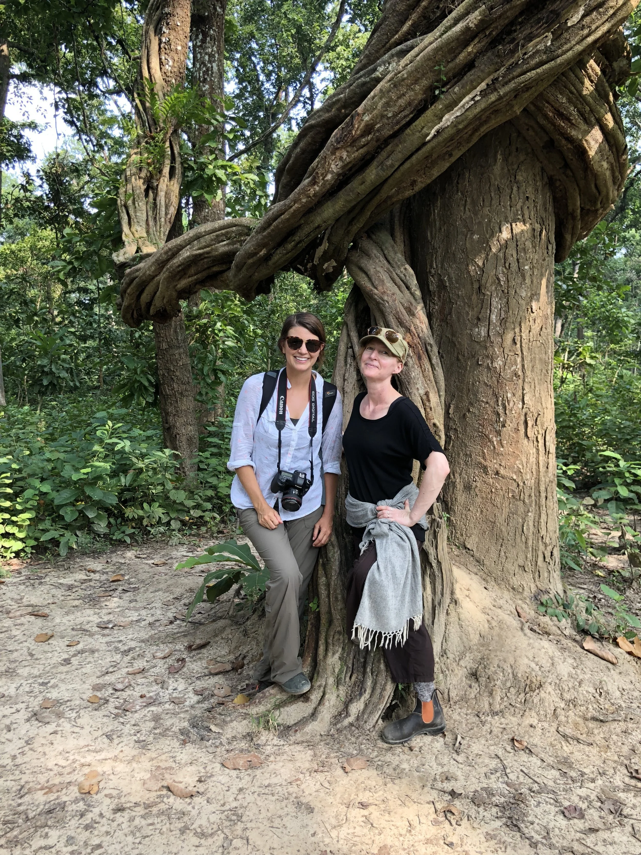 Tracy and Amy on the jungle walk taking a rest under the bough