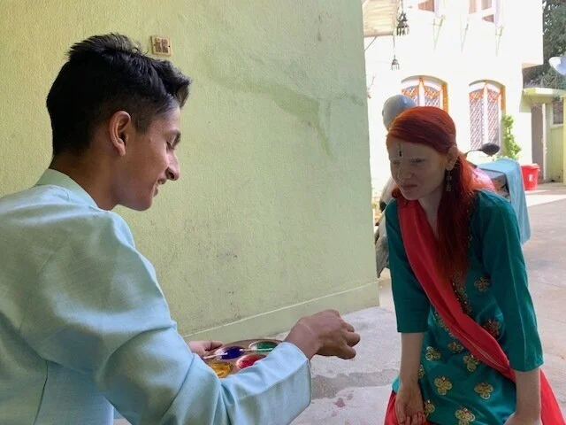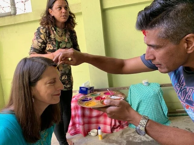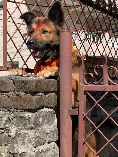It is an honor to be part of this joyous holiday time with my friends in Nepal. Everyone was honored, even Kalu, the dog at the BSF office, wearing a lovely decoration and tika!