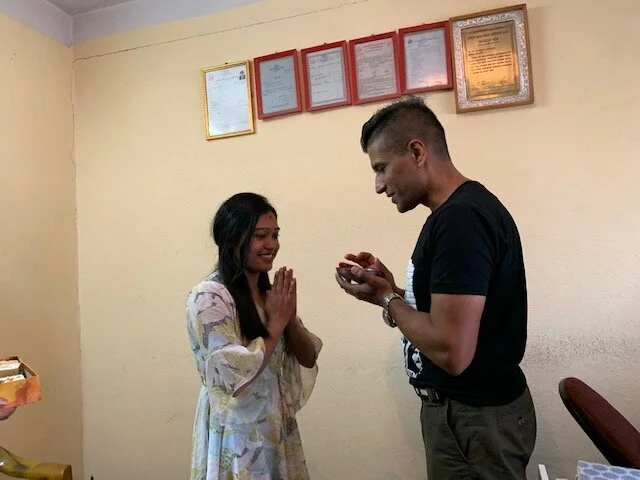 Bhai Tika day is the last day of celebration in Tihar and a special day for families to honor each other with love and gifts, the giving of tika and of course good food and conversation. So on this day I was honored to give tika to my new brother, Yogesh Satyal, in a special ceremony.