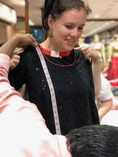The biggest holiday of the year in Nepal, Dashain, begins in a couple of days, so when we left the zoo we faced some serious traffic. Petrol lines were blocks long, and diesel fumes were heavy in the air. We donned our air-filtering masks and, undeterred, we headed to the shopping district, where most of the women spent a couple of hours diving into colors and fabrics and being fit for custom-made sparkling kurtas. We dodged jackhammers, traffic, and serious construction sites as we headed back to the hotel.