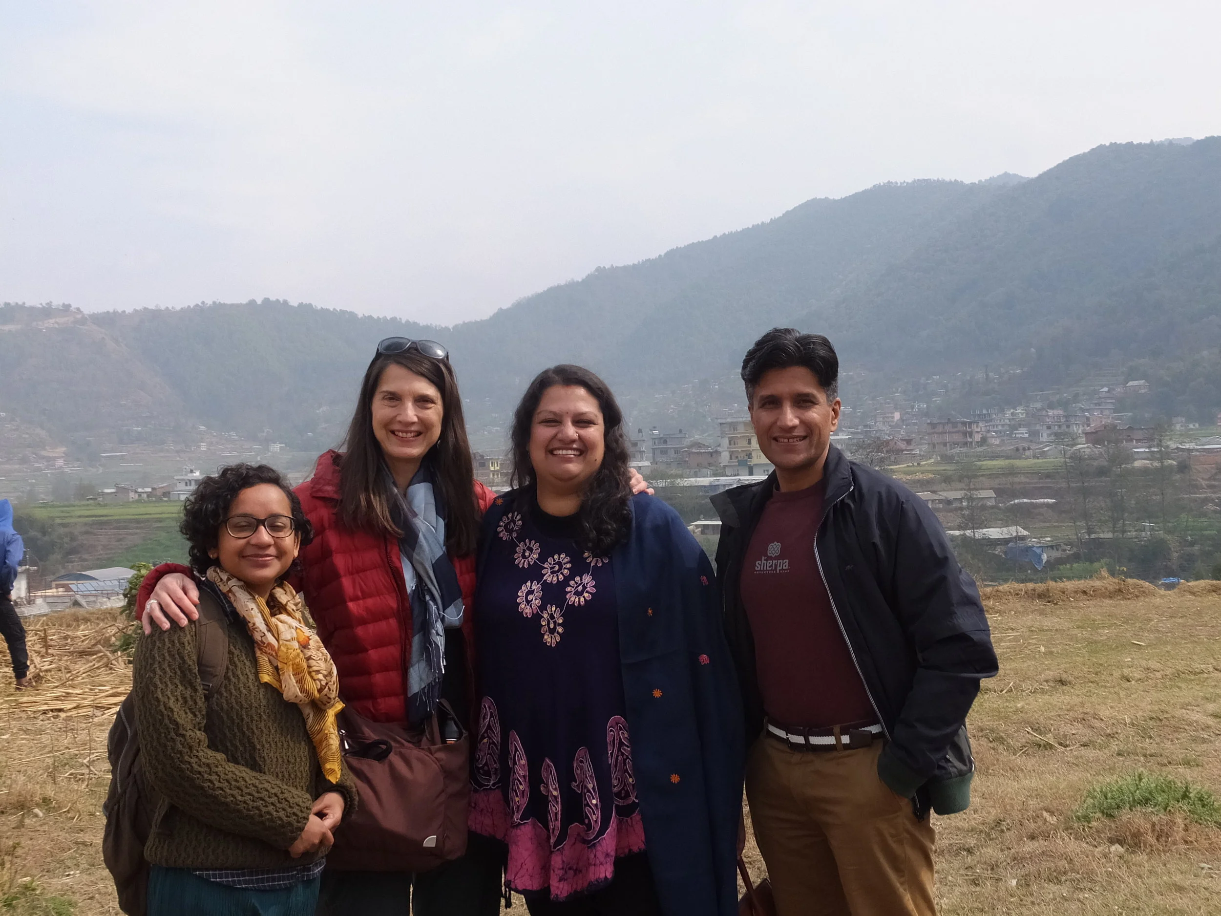 Christine, with NGO Director Leena, President, Yogesh and staff member, Susmita traveling to visit new children for the program in Godavri, Nepal.