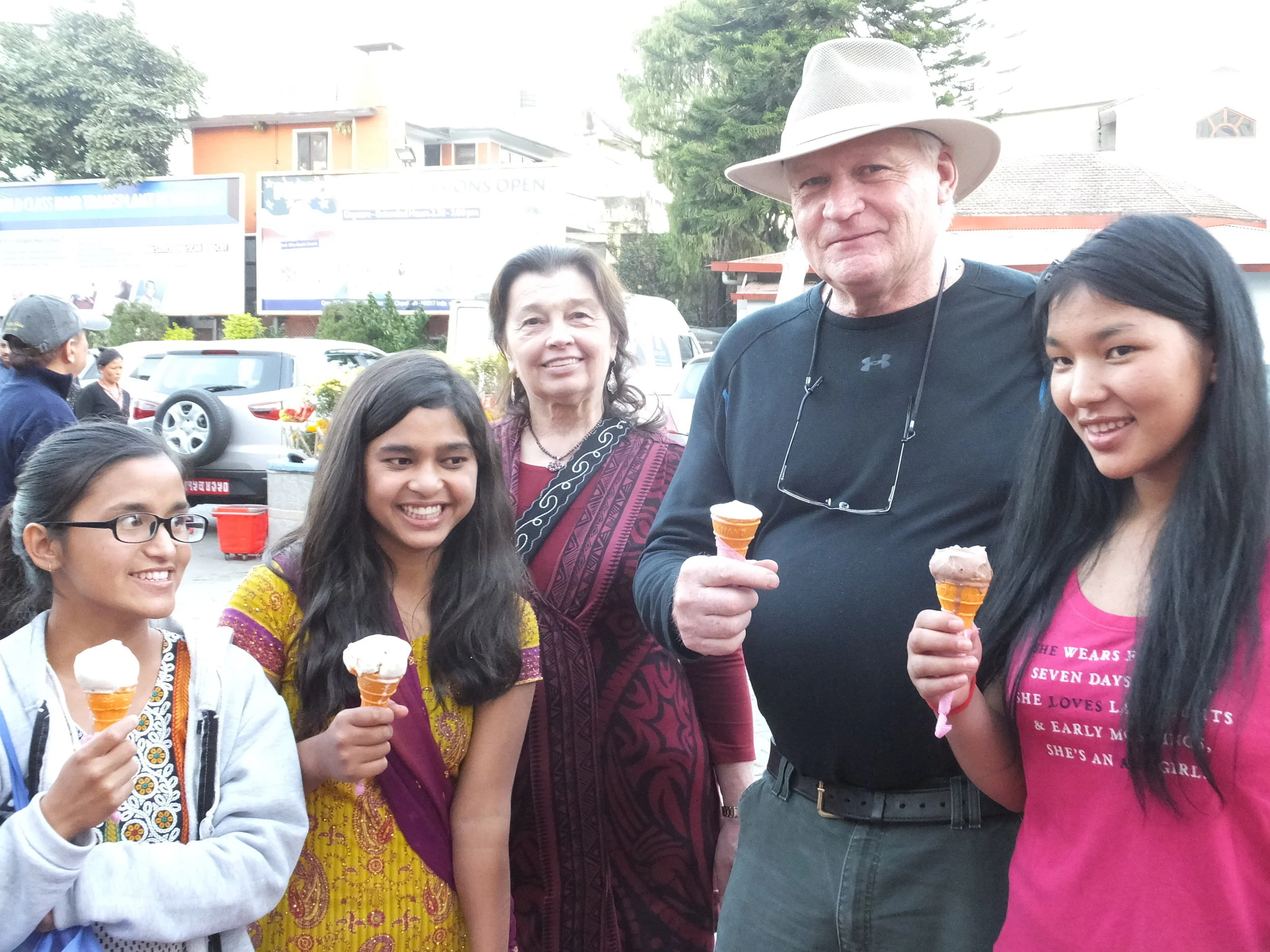 Dr. Sandra Hoffmann, Vice President, and Steve Schirber, child sponsor enjoy a special ice cream delight with the girls!